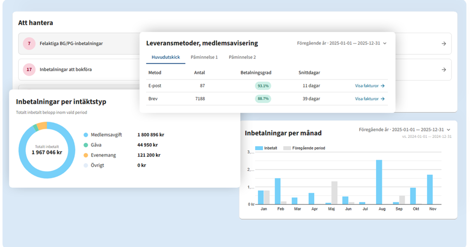 Hantera medlemmar, betalningar, förnyelser, kommunikation, gåvor och evenemang på ett enkelt sätt. Modernt, säkert och lättanvänt - med personlig support som förstår dina behov.