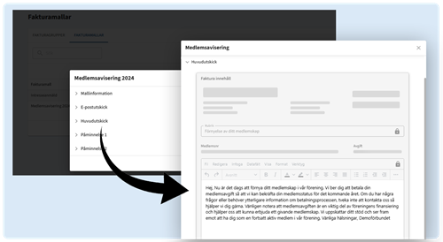 Nu finns en uppdaterad fakturamallshantering live i vår nya version. Här kan du enkelt justera texterna och säkerställa innehållet inför kommande utskick av aviseringar.