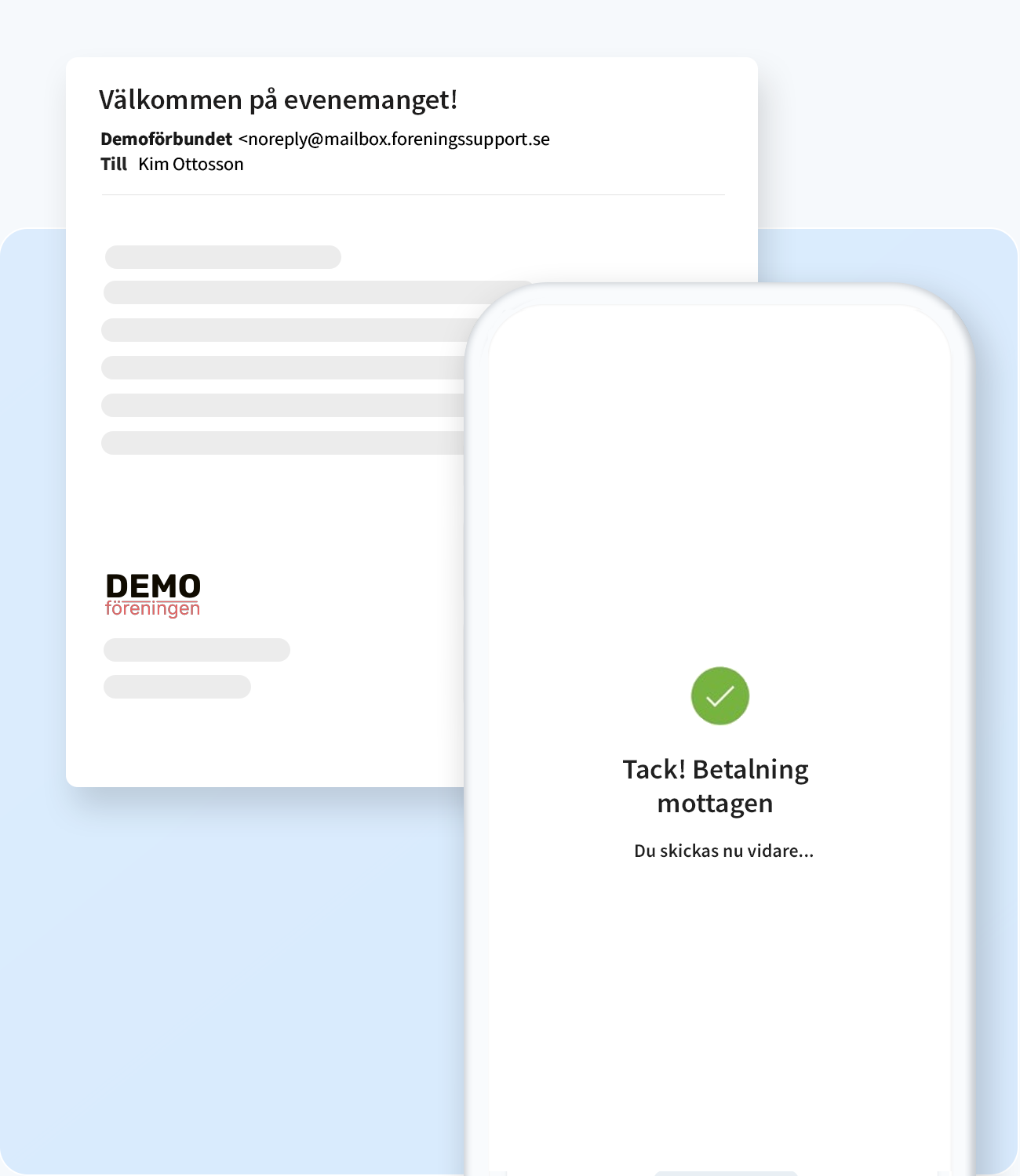 Varje anmälan och betalning skickar en bekräftelse via e-post till deltagarna