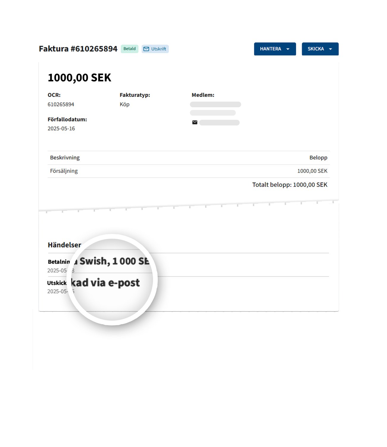 Med ett integrerat fakturaregister i medlemssystemet får ni ett kraftfullt verktyg för att hantera alla typer av fakturor – från medlemsavgifter till sponsring, lokalhyror och andra intäktskällor. Oavsett om ni skickar via e-post, post eller autogiro samlas betalningarna in automatiskt och ger er full kontroll över föreningens ekonomi – tryggt, smidigt och effektivt.