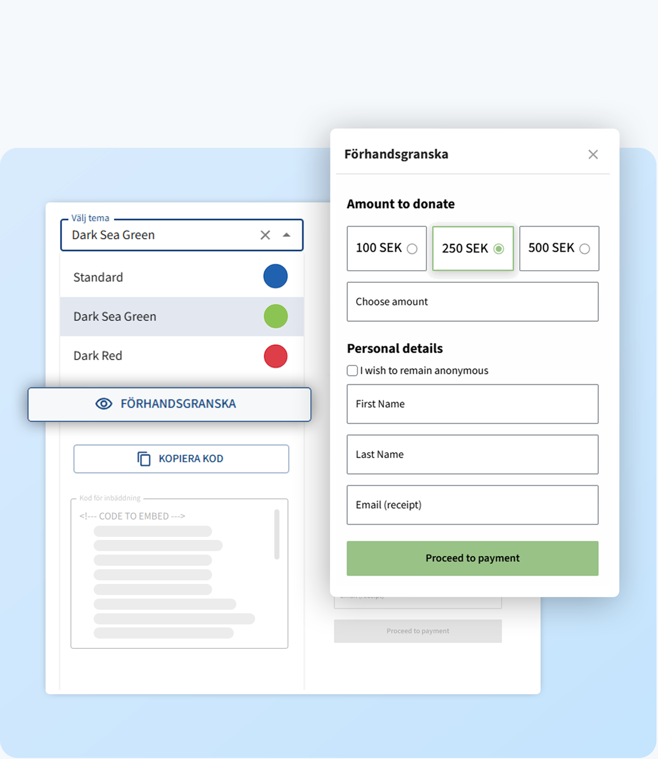 Färdiga formulär för att ge gåvor enkelt