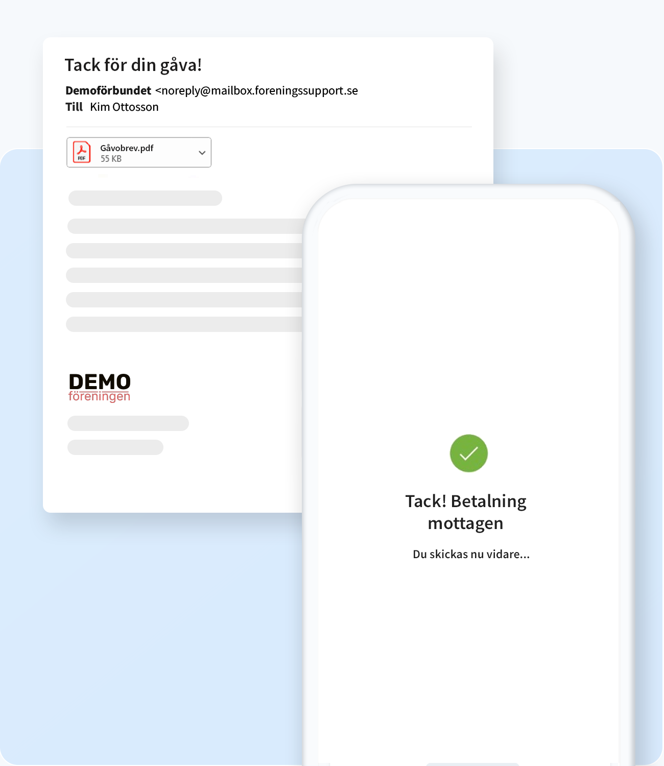 Visa er uppskattning och tacka personligen med automatiska e-postsvar. Om gåvan även inkluderar ett gåvoblad så bifogas detta i mailet.