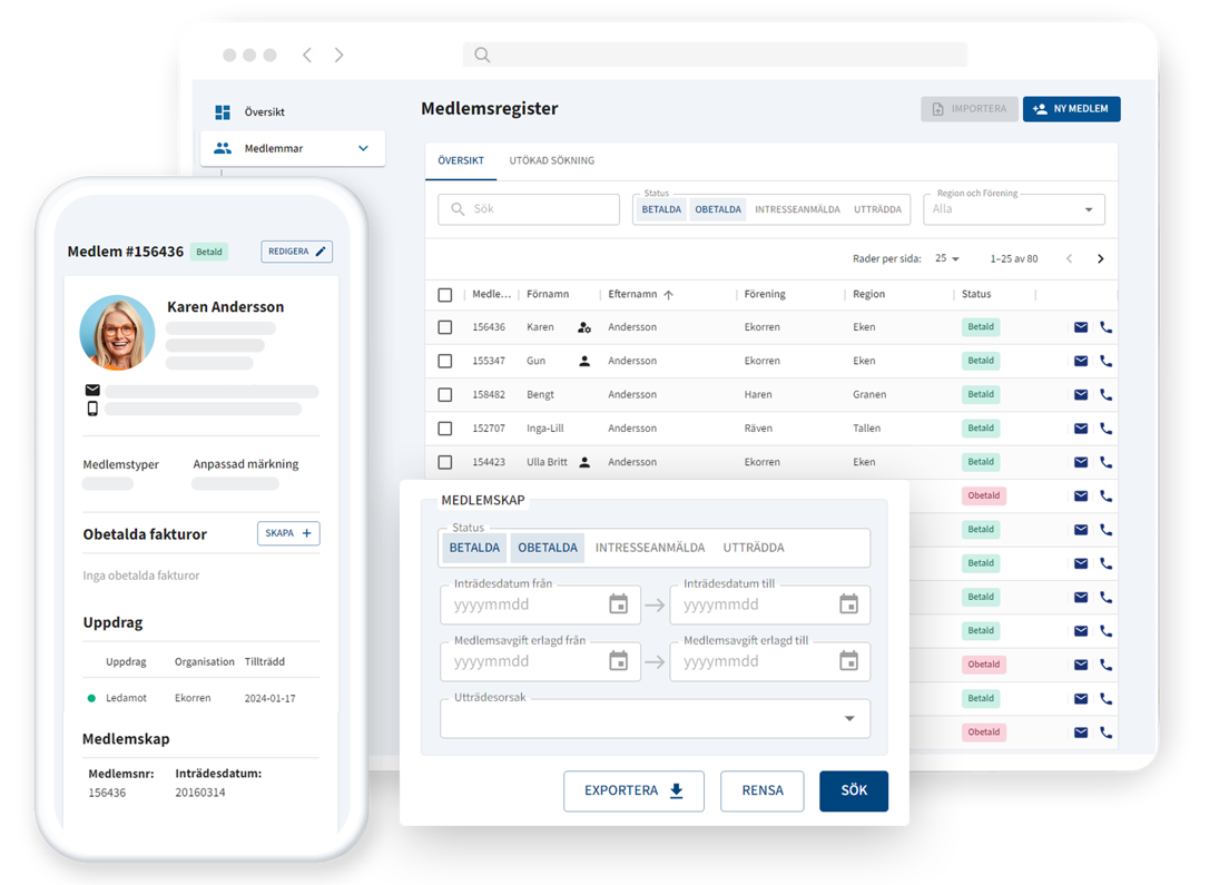 Vårt medlemssystem gör det enkelt att hålla koll på medlemsutvecklingen, kommunicera och värva fler medlemmar.