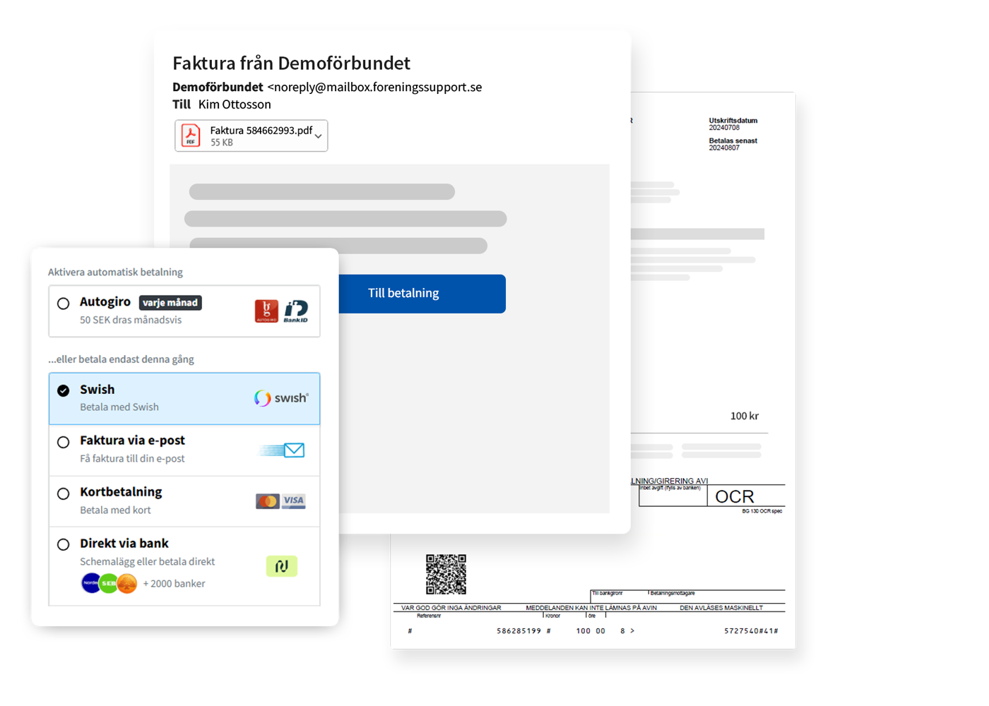 Underlätta hanteringen av medlemsavgifter, startavgifter eller biljettförsäljning. Med stöd för Swish, kort, autogiro och banköverföring blir det enkelt för alla att bidra.