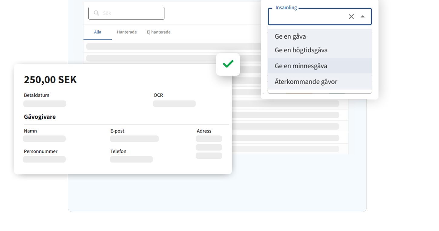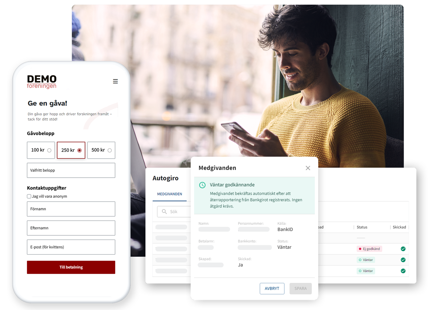 Underlätta insamling av gåvor, engångsdonationer eller återkommande bidrag. Stöd för Swish, kort, autogiro och banköverföring gör det enkelt för människor att bidra till ert ändamål.