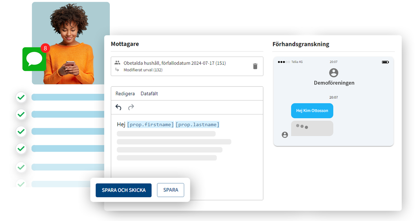 Håll kontakt med medlemmar, närstående och stödpersoner via e-post eller SMS. Segmentera utskick för att nå rätt målgrupp med rätt budskap, allt från nyhetsbrev till kallelser.